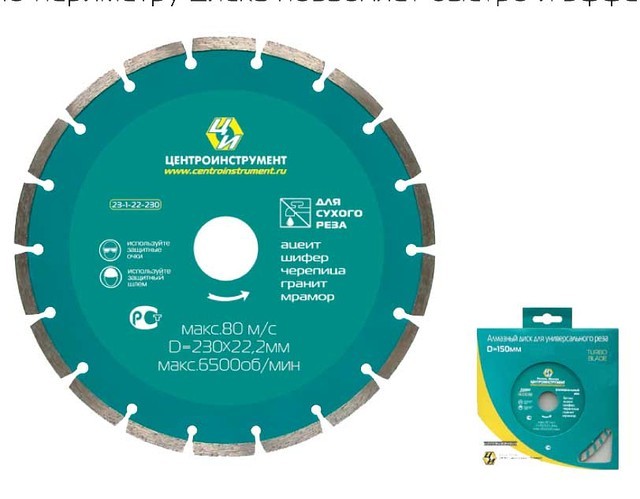 – диски діаметром 115-230 мм для ручної кутошліфувальною машини з внутрішнім отвором 22,2 мм (різці для сухого різання);